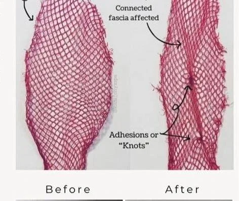 After her breast reduction surgery, this client noticed a tight vertical line running down her upper abdomen. It wasn’t part of surgical site but was caused by myofascial restriction - tension in the connective tissue.